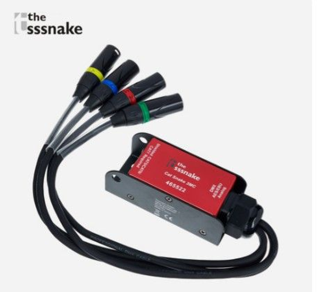 XLR (eller DMX) via CAT (4xXLR via shielded network cable with an RJ45 or Ethercon connector). Se https://www.thomann.se/the_sssnake_cat_snake_5mc.htm